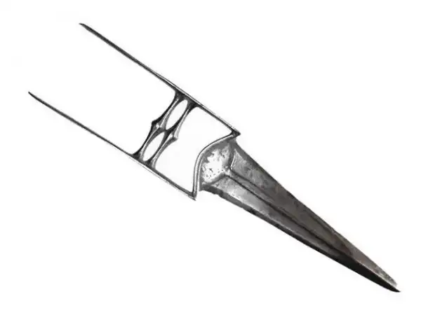 Катар – пожалуй, самая необычная разновидность индийских кинжалов. Его отличает рукоять в форме буквы Н из того же металла, что и лезвие, с двумя тонкими параллельными брусками, образующими опору для кисти левой руки. Катар предназначался для нанесения колющих ударов, и при умелом использовании легко протыкал кольчугу. Как и кпинга, катар был признаком высокого статуса своего обладателя.