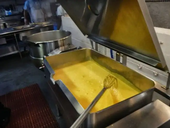 Тем временем, тут делают смесь нескольких разных расплавленных сыров.
