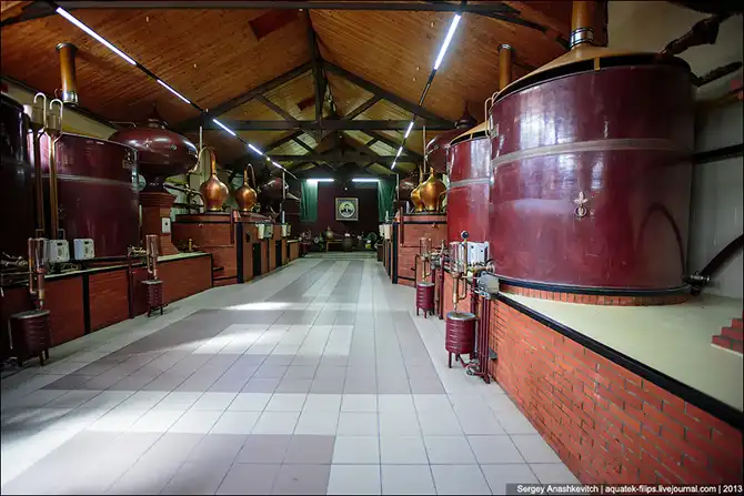 Итак, готовый сидр перевозят в дистиллерии, где он будет подвержен перегонке. Существует два типа дистилляции – перегонка в аламбиках шарантского типа и прямая непрерывная перегонка в кубе. Для кальвадоса, произведенного в апелласьоне Пэи д’Ож, обязательна двойная перегонка. Этот процесс более сложный с технической точки зрения, длительный, и отнимающий гораздо больше времени, чем однократная перегонка. Но это делает кальвадос совсем иным по качеству.