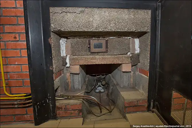Печь, над которой располагается котел с сидром. Раньше в качестве топлива использовались дрова, а сейчас газ.
