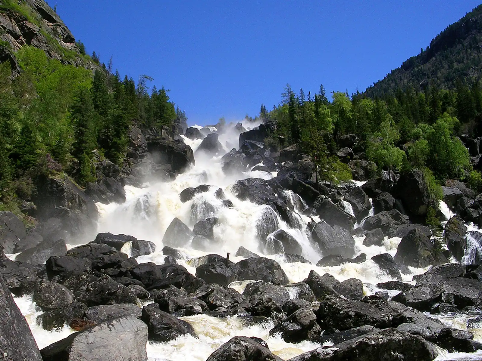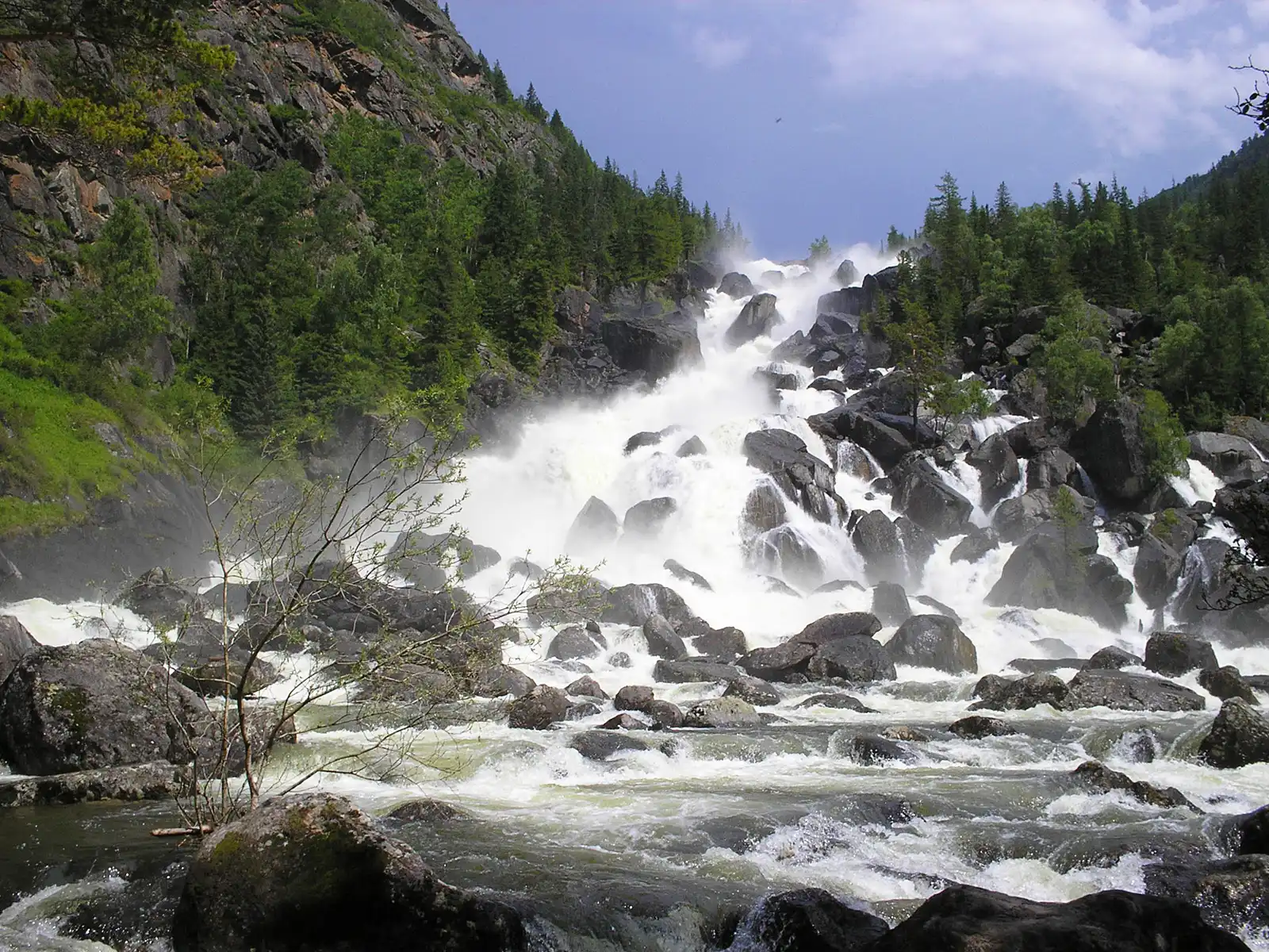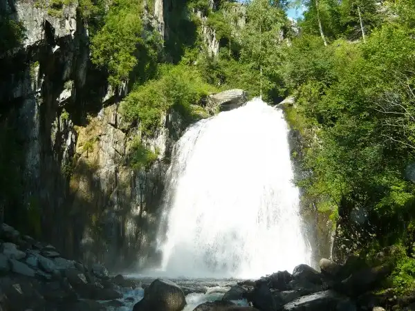 Большой Чульчинский водопад расположен на реке Чульча, в республике Алтай, на территории Алтайского заповедника. Местное название Учар означает – Неприступный. Высота водопада около 160 метров.