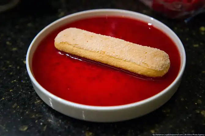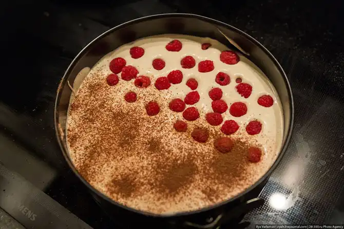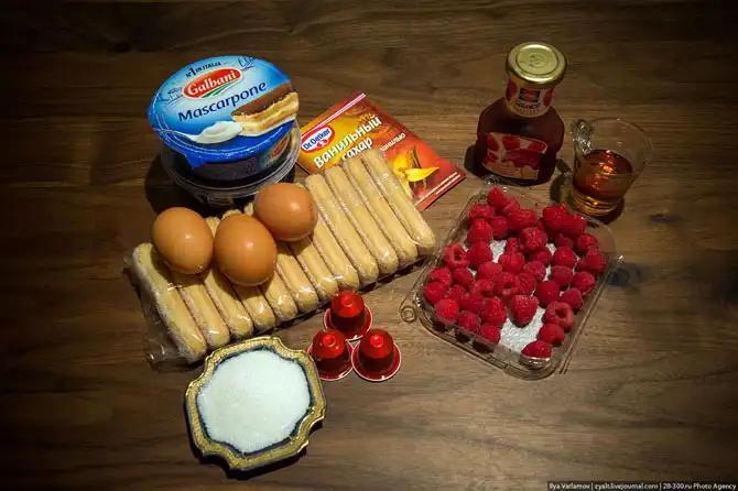 Но фото вы можете увидеть еще малину и малиновый соус. Дело в том, что с тирамису можно смело экспериментировать. Классический рецепт предполагает, что вы будете вымачивать печенье в кофе. Но ведь можно вымочить его в малиновом сиропе, или каком-нибудь ликере. Получится очень вкусно.
