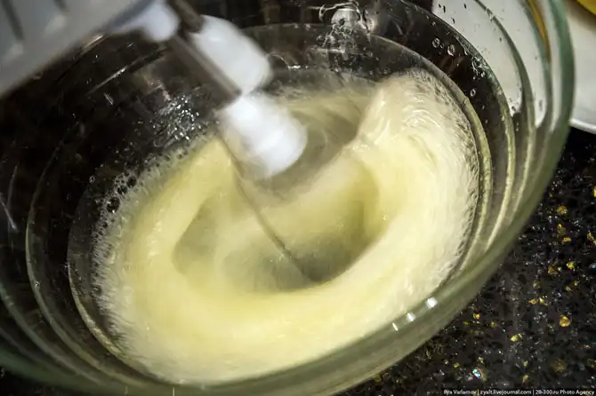 Взбивать надо до тех пор, пока не получится такая плотная пена.