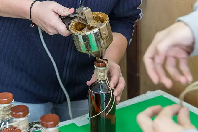 Цех розлива поменьше, чем в De Luze, и здесь коньяк наливают вручную: