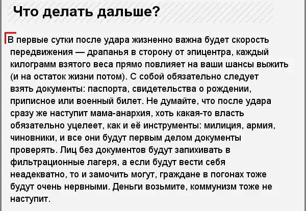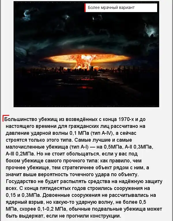 Предлагаю вам почитать далее интересную инструкцию о том, как выжить при ядерном взрыве, какие меры следует предпринять заранее, и где нужно пережидать самые тяжелые последствия взрыва.