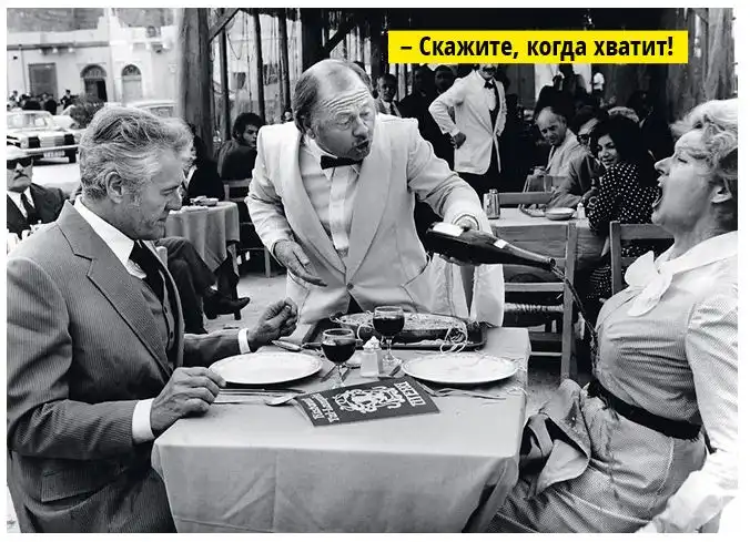 , а ещё есть такой анекдот, тоже в тему будет: Приходит мужчина в ресторан, делает заказ, приступает к еде, и когда на тарелке осталось совсем чуть-чуть еды, решает пошутить над официантом... Зовёт его, и говорит: "а это правда, что вы за нами доедаете?"