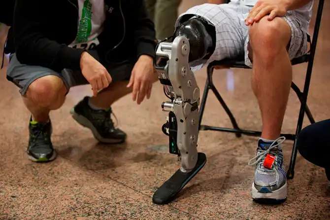 31-летний инженер-программист из Сиэтла, штат Вашингтон, Зак Ваутер (Zac Vawter) готовится покорять 103-этажный небоскрёб «Уиллис-тауэр» с бионическим протезом ноги в Чикаго, штат Иллинойс, 4 ноября 2012 года. Центр бионической медицины в Чикаго (Center for Bionic Medicine) разработал технологии, позволяющие людям с ограниченными физическими возможностями управлять своими протезами при помощи мыслей.