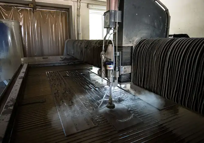 Машина по заданной программе «вышивает крестиком». Пескоструйка режет 5 мм сталь, как ножницы бумагу, впечатляет.