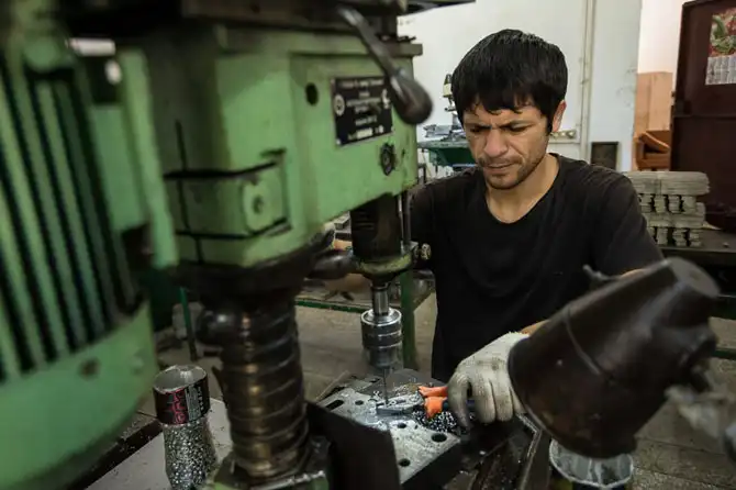 Люди работают за станками, не то что их коллеги в своих мастерских.