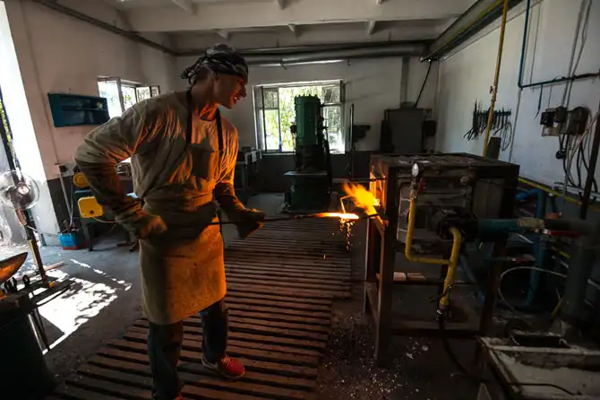 Вот в этом цеху нам встретился настоящий кузнец. Его изделия ценятся в несколько раз дороже.