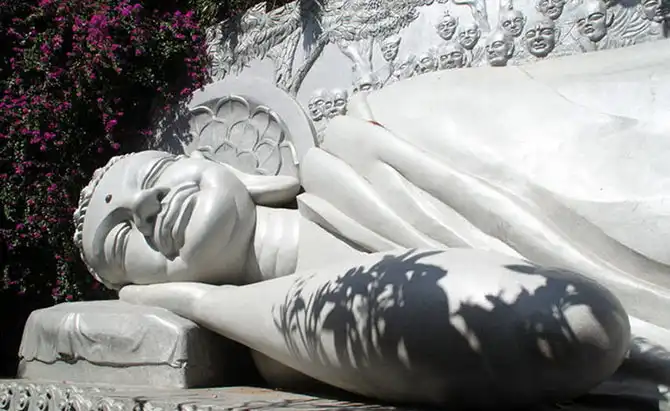 В Фантхиете, морском городке в 200 км от Сайгона, обязательно посмотрите на самую большую в стране статую Будды. Он здесь запечатлен в состоянии Нирваны, лежащим. Длина статуи 49 метров, высота – 11.