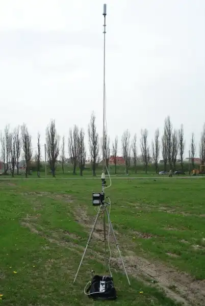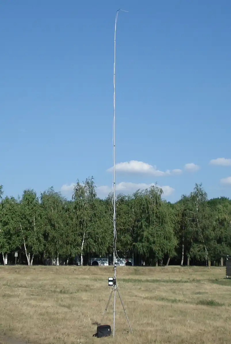 Простейшая демонстрационная установка для улавливания атмосферного заряда. Высота стойки 12 метров, проводимость воздуху, в окрестностях приемника, придает накаляемая проволока.