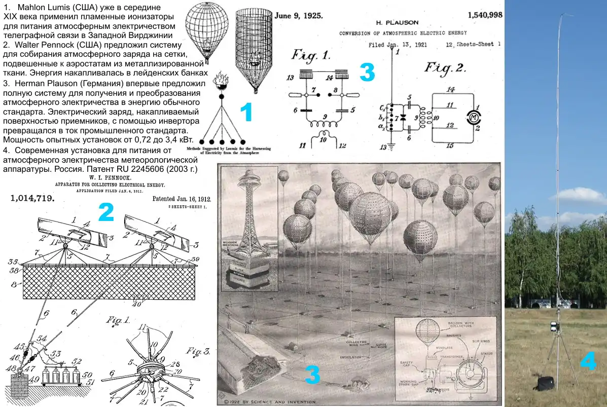 Так же уместно будет напомнить еще об одном патенте (патент РФ № 2030132) на использования атмосферного электричества.