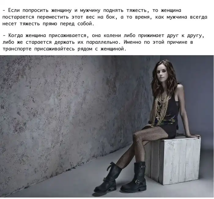 Вот по поводу пункта, в котором сказано, что женщина не будет поправлять белье сзади, начнем с того, что это просто неприлично ну и вообще делаем это так, что вы до сих пор думаете, что мы этого не делаем вообще:)