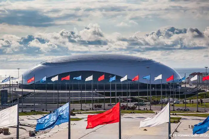 На стадионе «Фишт», где пройдёт церемония открытия и закрытия Олимпиады, ещё продолжается обустройство купола.