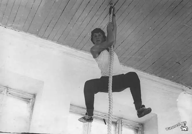 Попытка выполнить упражнение на канате: «в начале не знаешь, как на него залезть, а если вдруг залез – висишь и не знаешь, как с него слезть». Часто объяснения физруков состояли из «ну, давай, вперед!»