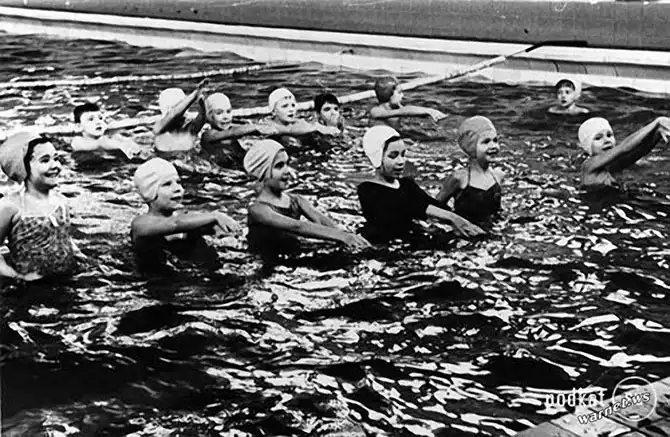 Особо везучие жители городов занимались спортом в школьных бассейнах. Москва, 1976 год.