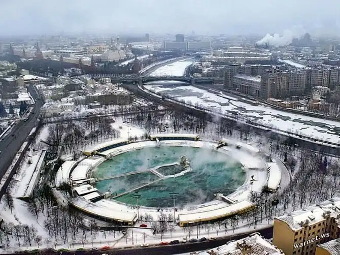 А самым счастливым удавалось поучиться плаванию в открытом бассейне «Москва». Вот так он выглядел в 1991 году. В снежные морозные дни там можно было плавать, пытаясь поймать ртом падающие снежинки… Позже на месте бассейна заново отстроили Храм Христа Спасителя.