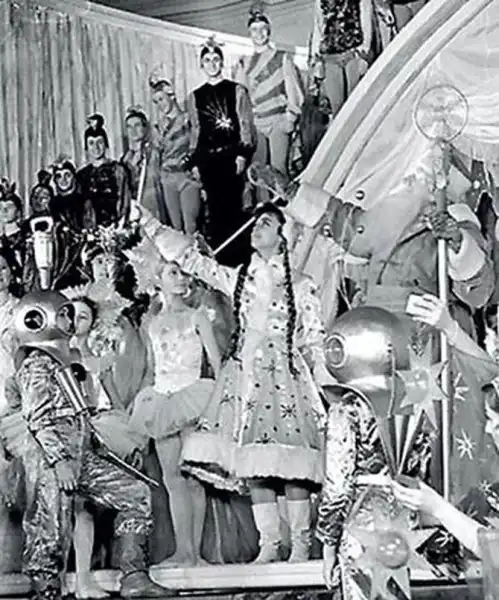 Позже, в 50-60-е годы прошлого столетия, новогодняя атрибутика носила «кукурузный» характер: швейной промышленностью массово выпускались новогодние костюмы «царицы полей», а на елках красовались яркие стеклянные кукурузки.