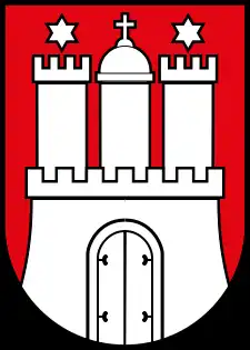 Этот символ очень напоминает замок, который можно увидеть на гербе города Гамбург.