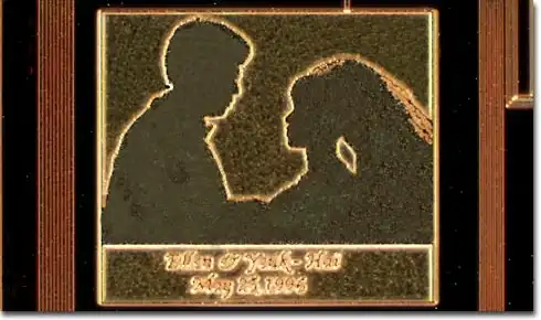 На этом же чипе имеется еще один удивительный артефакт — объявление о бракосочетании между Ellen и Yeuk-Hai, которое состоялось 25 мая 1996 года. Человек, который вступил в законный брак и чье изображение увековечено на этом микропроцессоре, был инженером-конструктором, руководившим процессом создания масок для Silicon Graphics MIPS R10000. Это, наверное, самое маленькое объявление о бракосочетании в мире — его размер всего 100 микрон.