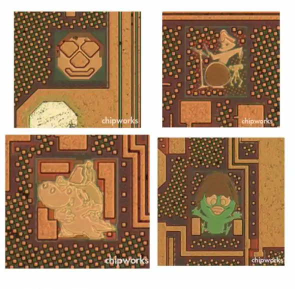 Воодушевленный этой информацией, Майк Дэвидсон стал усердно искать «чип-арт» на кремниевых чипах. Результат не заставил себя долго ждать. Некоторые рисунки были очень хорошо узнаваемы, над содержанием других приходилось ломать голову.