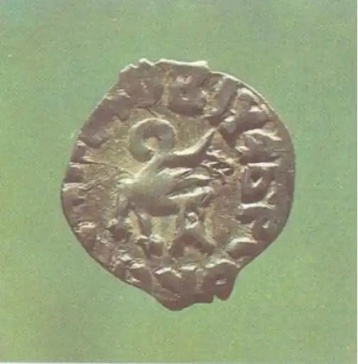 Охота на медведя. Великое княжество Тверское. Деньга. Серебряная монета периода правления князя Ивана Михайловича (1399-1425).