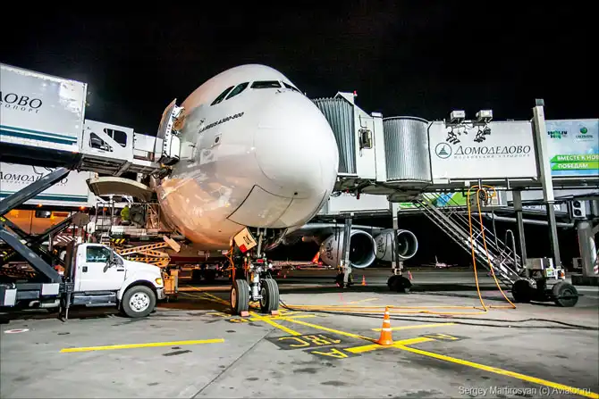 Как обслуживают самый большой пассажирский самолет в Домодедово