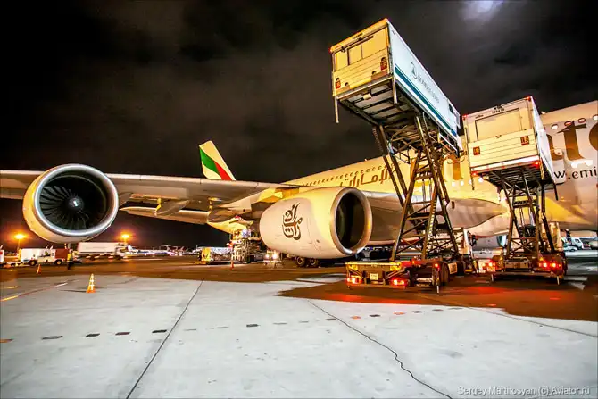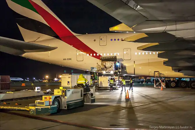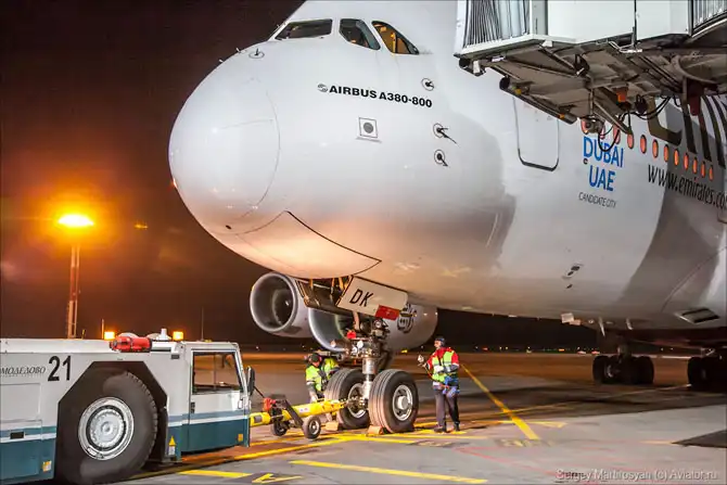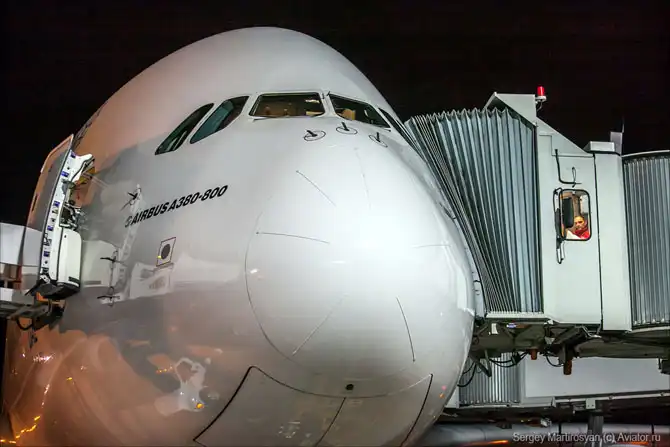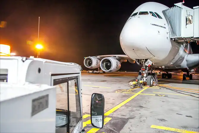 Рядом обслуживается Boeing 747-400 Трансаэро, технологии почти те же самые. Кстати, одним из первых заказчиков А380 в России является именно эта компания, поставка в 2015 году, если не ошибаюсь.