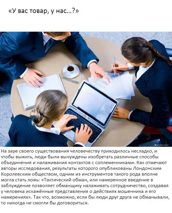 Так что, возможно, если бы люди друг друга не обманывали, то никогда не смогли бы договориться.