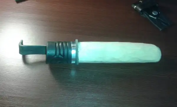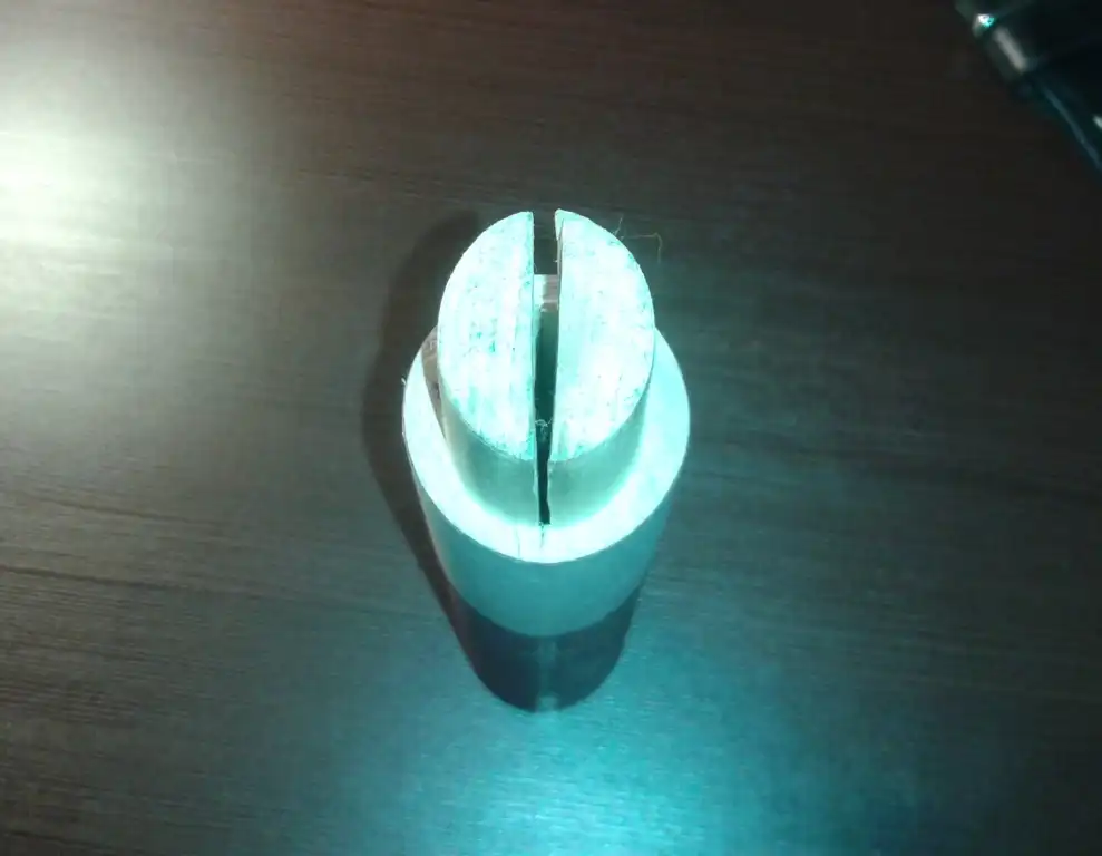 Вот заготовка с каналами под лезвие и уже склеена (в общем ножны пришлось клеить 3 раза)