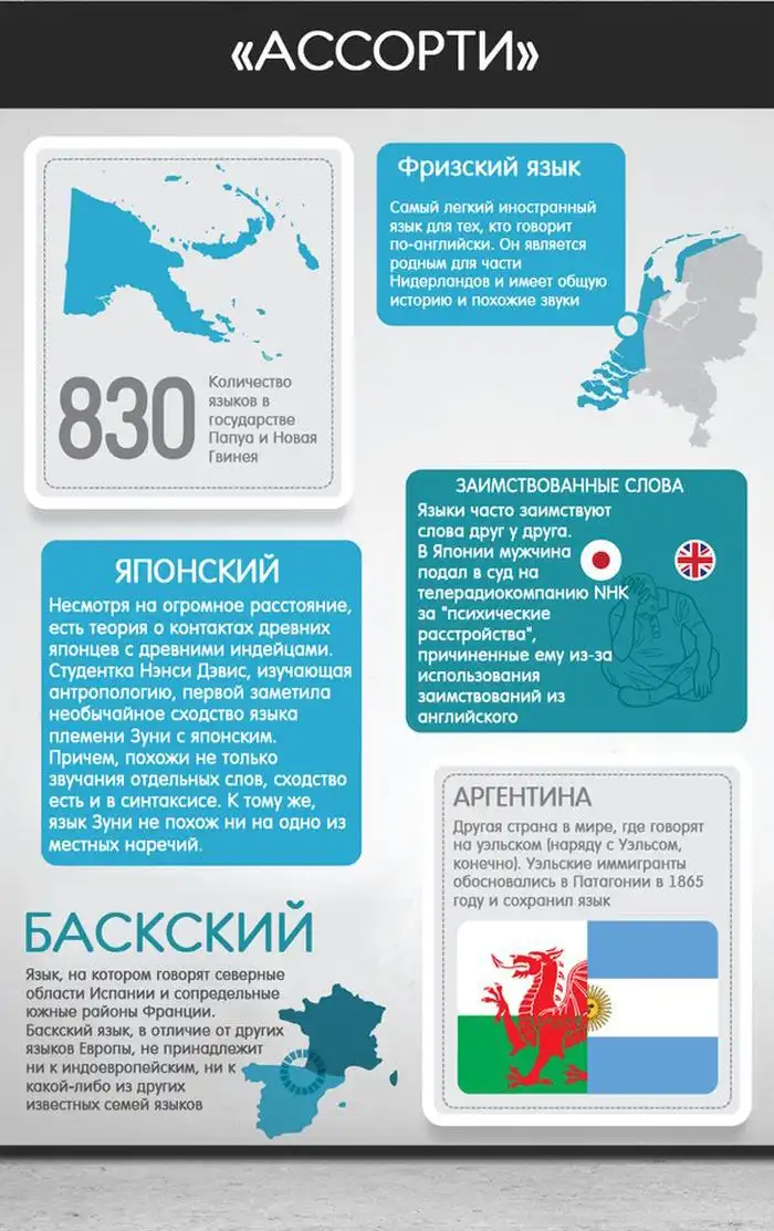 Классный и действительно познавательный инфографик, который расскажет вам о самых интересных фактах про языки.