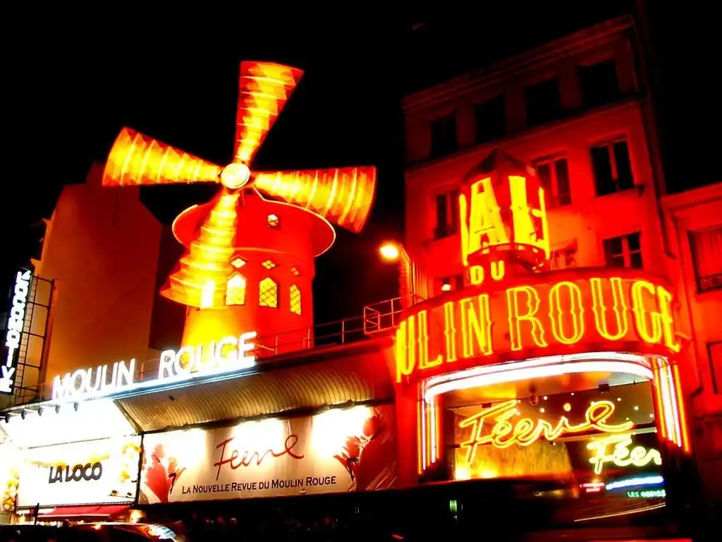 Самый высокий холм Парижа — Монмартр. До середины XIX века он был известен своими виноградниками и мельницами. Ныне на Монмартре осталась только одна, но зато самая узнаваемая — Красная мельница, в переводе — «Мулен Руж», известное на весь мир кабаре с феерическим танцевальным шоу и конечно знаменитым традиционным французским канканом.Французы говорят: » Кто был в Париже и не посетил Мулен Руж, тот не сможет до конца понять, что же такое Париж». Ведь Мулен Руж — это тоже часть истории Парижа, это больше чем мелодраматическая история, рассказанная в одноименном фильме, это — символ. Символ сбывшихся и несбывшихся надежд, разбитых и соединившихся сердец, творчества и порока, красоты и безобразия.