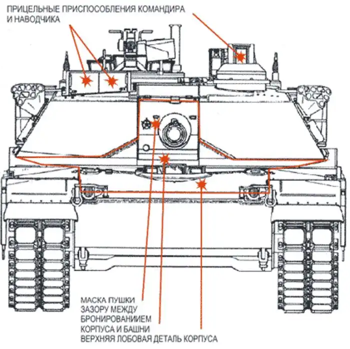 Уязвимые места лобовой проекции танка М1А1 (А2) «Абрамс»