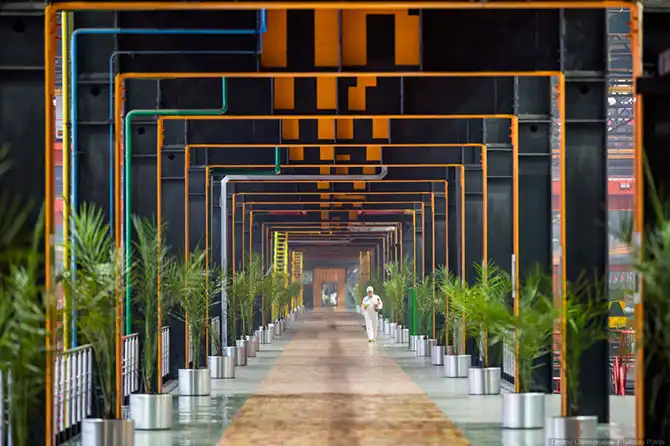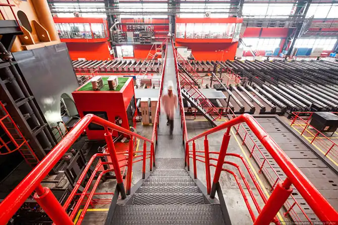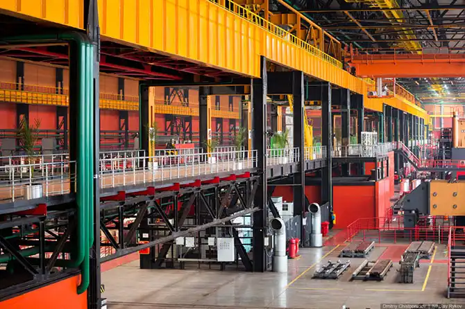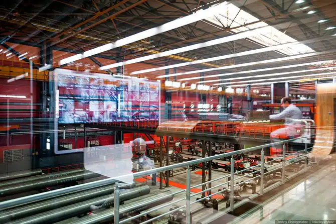 Длина цеха порядка 720 метров, ширина около 150 метров, а площадь — 15 футбольных полей.