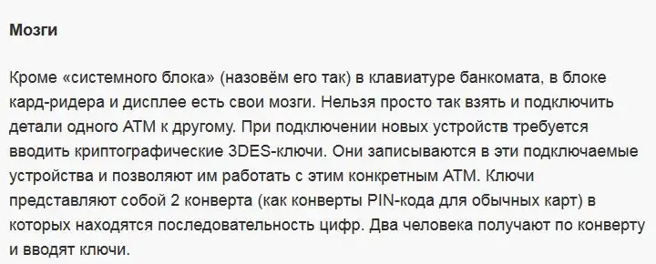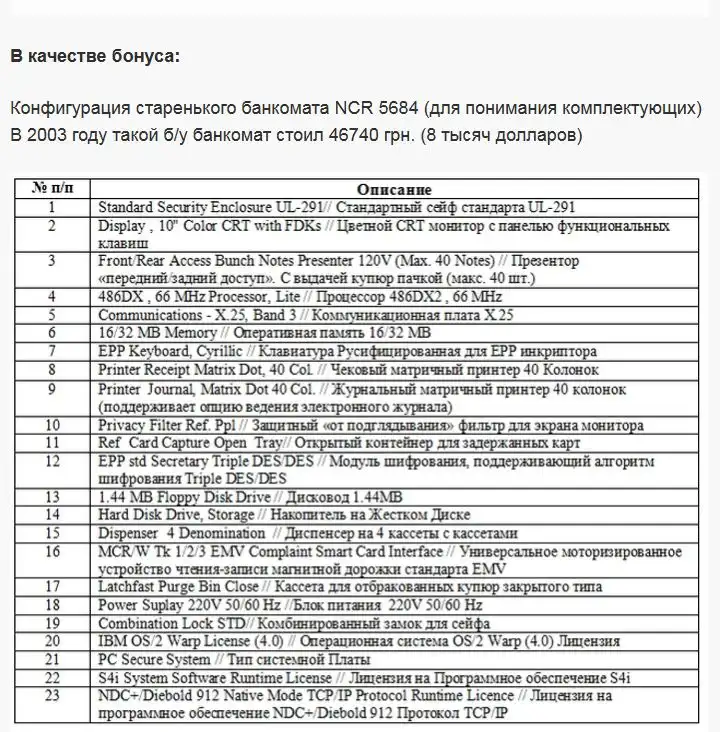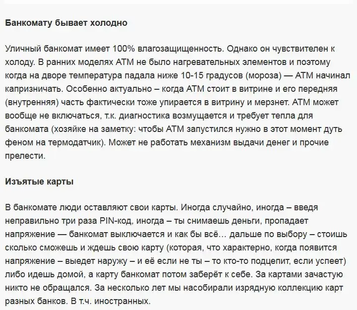 Не все банкоматы способны выдать 40 купюр за раз. Банкоматы фирм Diebold, Nautilus и WinCor способны выдавать до 40 купюр за раз в течении всего срока эксплуатации. А вот банкоматы NCR, из-за особенности строения подающего механизма (диспенсера), со временем не всегда способны подать 40 купюр за раз. Из-за растяжения ремней количество купюр сокращается до 32-33 в зависимости от состояния купюр.