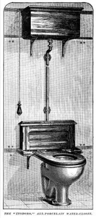 Чтобы установить такой унитаз, требовалось подвести трубы и канализационную систему. В то время унитазы устанавливались в бывших шкафах, ради экономии места.