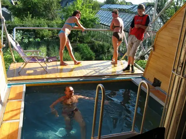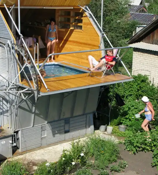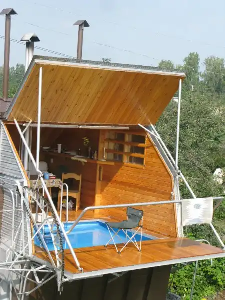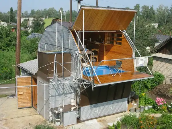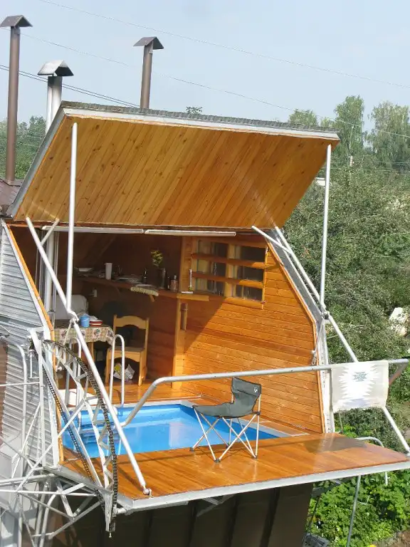 Была такая странная дача, больше похожая на бочку для полива соединенную с банькой