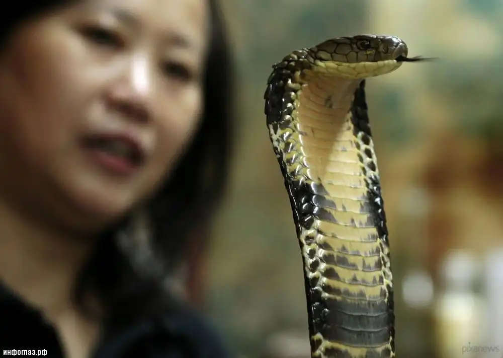 Хуань Куо-нань (Huang Kuo-nan), владелец змеиной фермы, целует кобру во время представления. Тайнань, Тйвань, 5 февраля 2013 года. © REUTERS/Pichi Chuang