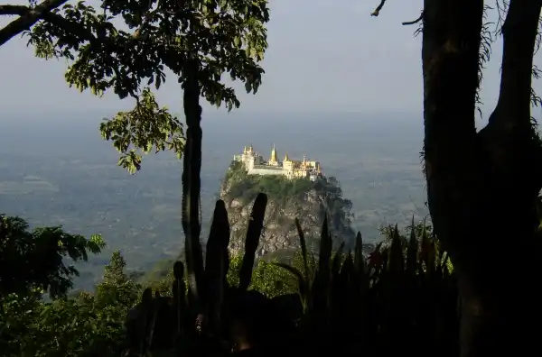 Одним из самых красивых храмов мира является буддийский монастырь Таунг Калат (Taung Kalat), который расположен на вершине одноимённой горы в Мьянме. На самом деле эта гора не что иное, как потухший сотни лет тому назад вулкан (последнее извержение датируется аж 442 годом нашей эры). Теперь на вершине бывшего вулкана построен буддийский монастырь Таунг Калат, которому из-за своего уникального расположения предписывают самые различные мистические свойства. Действительно, много ли вы знаете храмов построенных на жерле пусть и потухшего, но всё же вулкана!