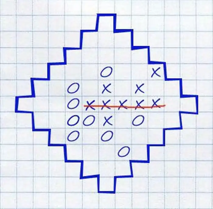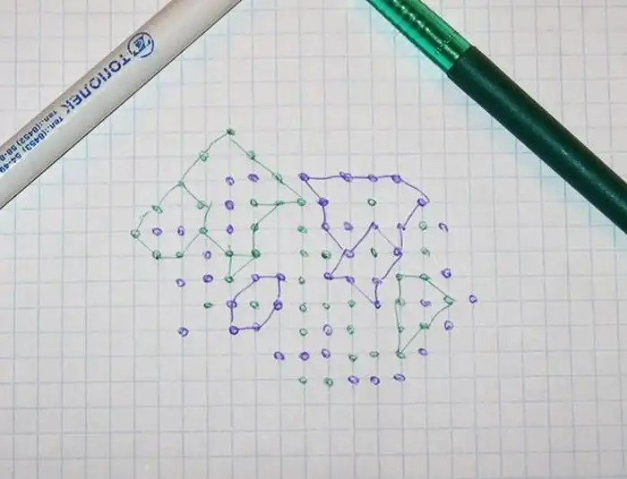 Игра для двух человек - для тебя и соседа по парте. Задача - окружить точками своего цвета точки противника. Соперники по очереди ставят точки на пересечении линий листа в клетку, каждый своим цветом. При создании непрерывной (по вертикали, горизонтали, диагонали) замкнутой линии образуется область. Если внутри неё есть точки противника (при этом могут быть пункты, не занятые чьими-либо точками), то это считается областью окружения, в которую далее запрещено ставить точку любому из игроков. Если точек соперника нет, то область свободная и в неё можно ставить точки.
