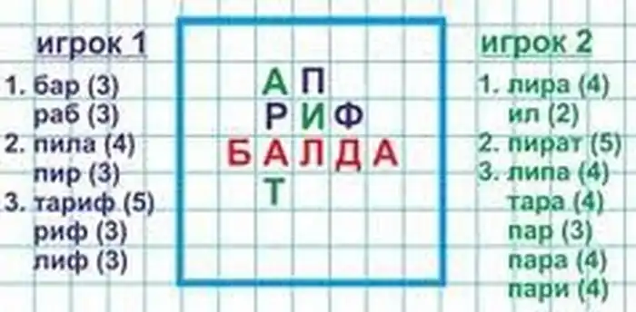 В центре поля пишется какое-нибудь слово из пяти букв, обычно БАЛДА, и игроки по очереди приписывают в соседних клетках буквы. Во время своего хода игрок должен подставить на игровое поле букву так, чтобы она располагалась в клетке, смежной уже заполненным клеткам по горизонтали или по вертикали. Иными словами, слева, справа, сверху или снизу относительно уже заполненных клеток. После этого необходимо составить слово с использованием установленной буквы. У кого количество букв всех придуманных слов будет больше в итоге, тот и победил.