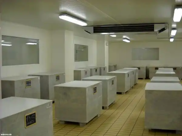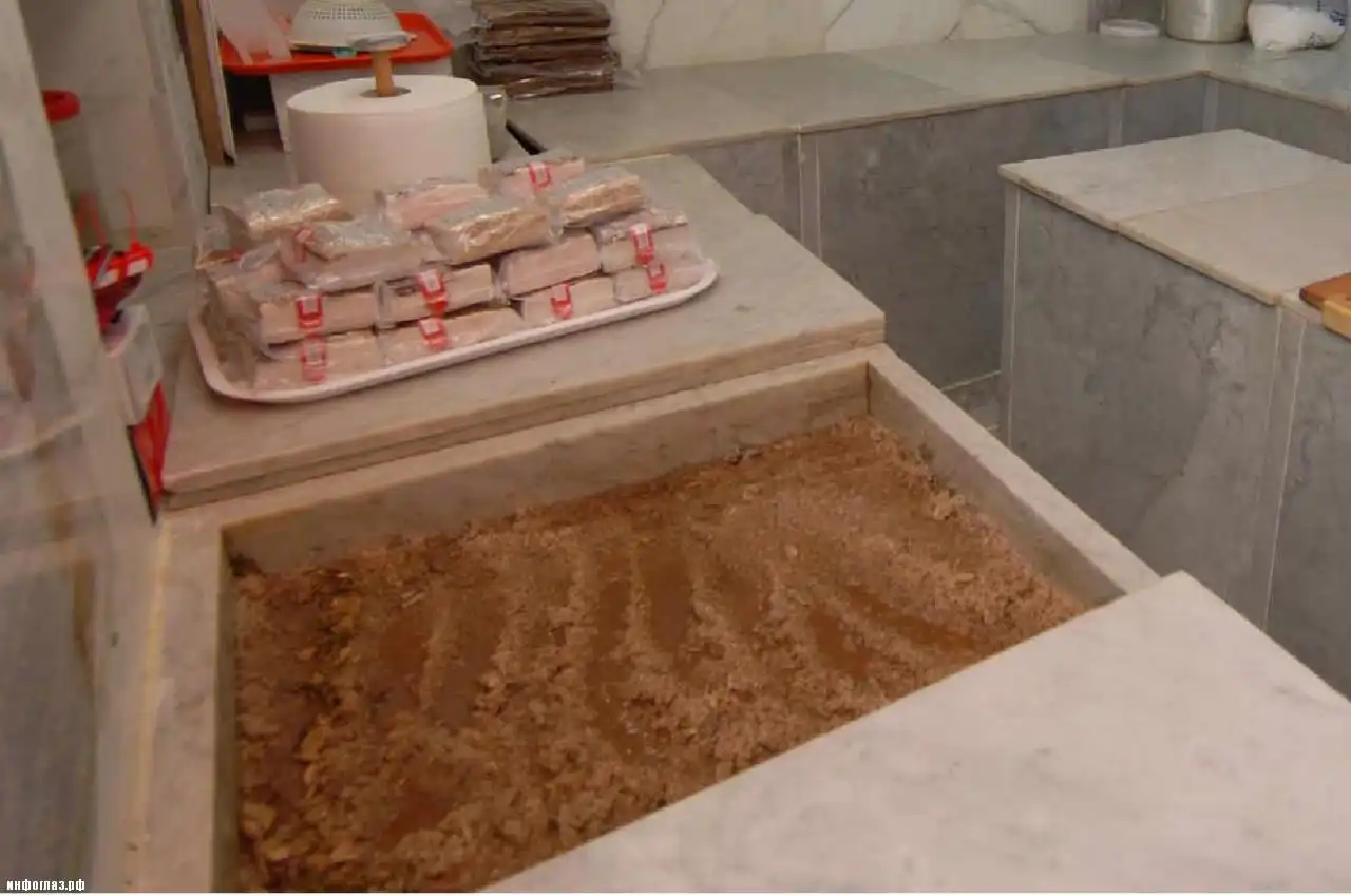 Первое, что видишь, когда спускаешься в помещение, где хранится сало, — ряд мраморных контейнеров; зрелище чем-то напоминает музейную экспозицию античных саркофагов. Эти необычные емкости называются conca; они издавна используются местными жителями для засолки и хранения сала. Прочные и удобные, conca служили десятилетиями и передавались по наследству от отца к сыну. В маленьких, размером 50*50*50 см, солили сало для собственных нужд; те семьи, кто занимался производством и продажей, ставили у себя емкости побольше. Для изготовления таких необычных «салохранилищ» подходит особый, очень редкий сорт мрамора, обнаруженный пока лишь в одной из пещер в окрестностях Колоннаты. Он отличается очень плотной мелкокристаллической структурой, которая не дает рассолу и микрочастицам жира просачиваться сквозь стенки.