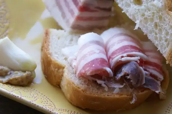 Кто-то относит емкость в винный погреб ,кто-то в местные мраморные гроты и пещеры на срок до шести месяцев или даже до весны. В результате получается нежнейшее, тающее во рту, обволакивающее своими насыщенными ароматами сало, по сравнению с которым все другие сорта блекнут и меркнут.