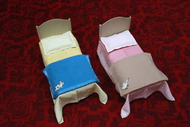 Кукольные кроватки, принадлежащие королеве Елизавете II показаны в Букингемском дворце перед выставкой Королевское Детство 2 апреля 2014 года в Лондоне, Англия.