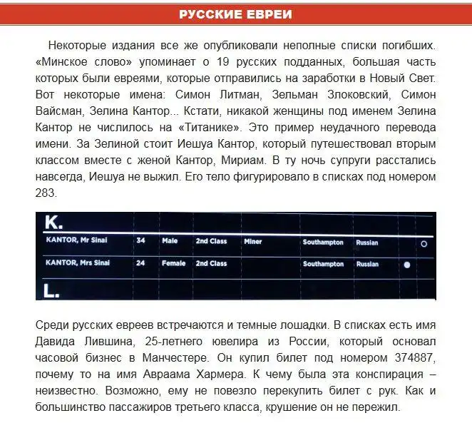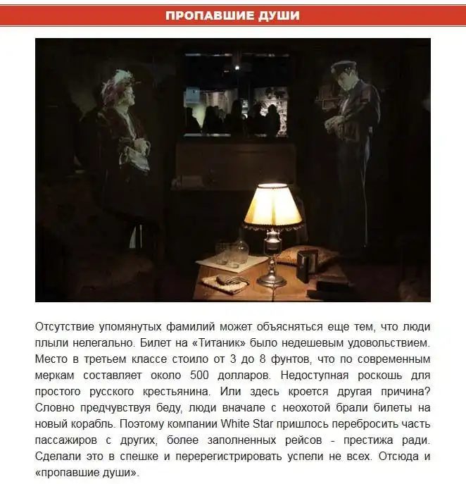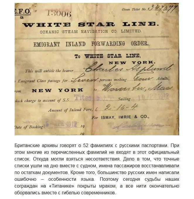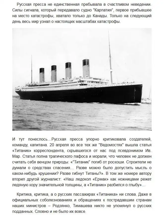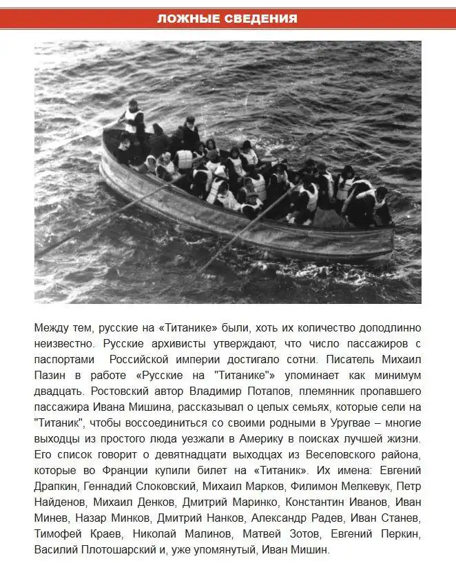 По официальной информации, на борту затонувшего лайнера "Титаник" находились несколько русских пассажиров.