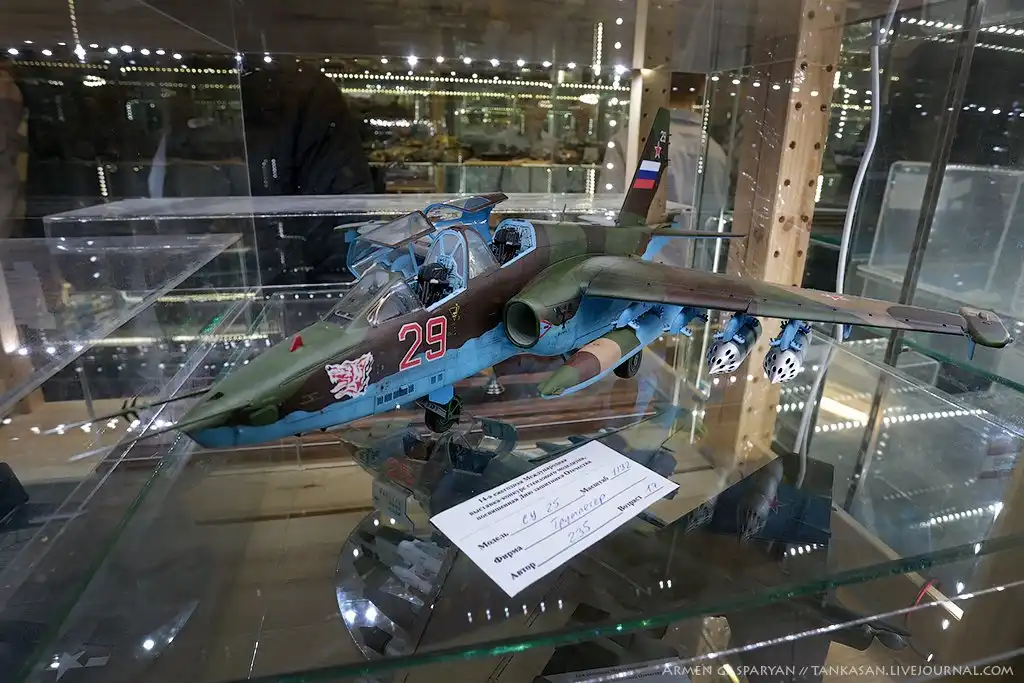 Для сравнения, знакомая многим по ДИШ, модель Никиты Баска. Комментировать в этот раз тоже не буду, моделисты меня поймут. По необъяснённой мне причине она не была оценена в своей категории (подростки), а оценивалась в общей "куче" c остальными моделями в 32-м масштабе. Оставим это на совести судей, и как всегда в данном случае оценки с каждым годом становятся всё более субъективными ... Но зато как говориться был и приятный момент. Теперь у этого красавца новый хозяин, в прошлом пилот Су-25, так что автор, считаю, заслуженно может гордится этим событием)