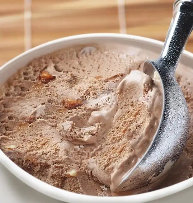Мороженое, приготовленное в домашних условиях, не должно быть перемороженным. Алкоголь понижает температуру замерзания (вот почему мы охлаждаем спиртное в морозильной камере), что делает мороженое более мягким и кремовым, не образуя при этом кристаллов льда. Помните: алкоголя нужно совсем немного – три чайных ложки на литр. Если не хотите менять вкус мороженого, добавьте водки. Амаретто, Гранд Марнье и другие ароматные ликёры придают мороженому свой особый вкус.
