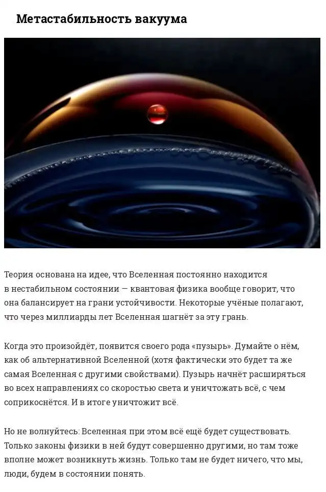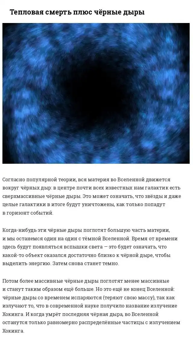 В наши дни мнения ученых по поводу того, каким будет "конец" нашей вселенной, существенно расходятся. Кто-то утверждает, что вселенная закончит свое существование из-за повторения сценария изначального "большого взрыва", а другие утверждают, что вселенная будет существовать вечно.