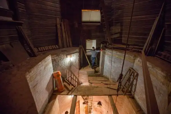 Сама башня, несущие конструкции, эти стены, коробка были нормальные, перекрытия деревянные провалились, крыша начала проваливаться, никаких коммуникаций, никакого электричества, и плюс мэрия легализовала пристроенные рядом сараи — она не смогла их снести, и эти постройки по мановению волшебной палочки превратились в капитальные здания. И мэрия всё это барахло пыталась сдать в аренду примерно по цене 20-30 тысяч в месяц. В принципе, за такое офигенное здание это совсем немного — но в каком состоянии оно находилось!